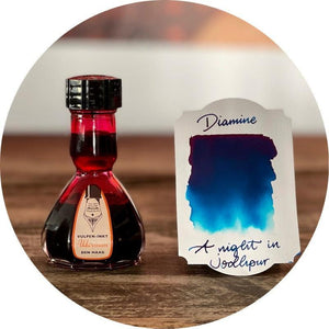 Ferris Wheel Press’in simli mürekkepleri, ne fazla akışkan ne de yoğun kıvamlı formülüyle özellikle orta ve geniş uçlu kalemlerde istisnai bir yazım deneyimi sunar. Şişelerindeki zarafet, içeriğindeki renk oyunlarıyla birleşerek dolma kalem meraklıları için vazgeçilmez hale gelir. Simli mürekkeplerin en belirgin özelliği olan “ışıltının dengeli yayılması” Dominant Industry’nin uzmanlık alanıdır. Geniş renk yelpazesi sayesinde ister gündelik yazımda ister şıklığın ön planda yer aldığı özel projelerde kullanılabilir.