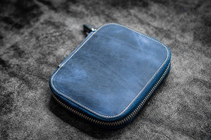 Eskiltilmiş koyu mavi deri, mavinin açıklı koyulu farklı tonlarını taşır. Crazy Horse, oldukça yumuşak ve az işlemden geçmiş bir deri türüdür. Bu nedenle deri üzerinde zamanla ve kullanıma bağlı olarak çizikler meydana gelebilir. Bu duruma patina adı verilir ve bazı deri severler için oldukça aranılan bir özelliktir. Eğer bu kullanım izlerinin sizi mutsuz edeceğini düşünüyorsanız, defterlerde karton kapaklı olanlara, kalemlik gibi deri ürünlerde ise cilalı derilere bakmanızı tavsiye ederiz.