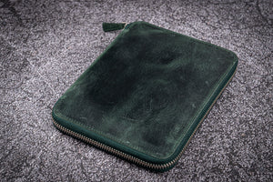 Eskiltilmiş orman yeşili deri, yeşilin, zümrüt gibi koyu tonlarından açık yeşile kadar pek çok farklı renk tonlarını üzerinde taşır. Crazy Horse, oldukça yumuşak ve az işlemden geçmiş bir deri türüdür. Bu nedenle deri üzerinde zamanla ve kullanıma bağlı olarak çizikler meydana gelebilir. Bu duruma patina adı verilir ve bazı deri severler için oldukça aranılan bir özelliktir. Eğer bu kullanım izlerinin sizi mutsuz edeceğini düşünüyorsanız, defterlerde karton kapaklı olanlara, kalemlik gibi deri ürünlerde ise cilalı derilere bakmanızı tavsiye ederiz.