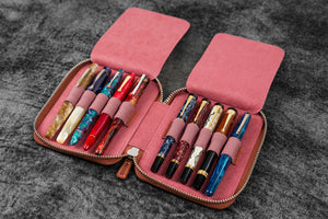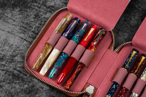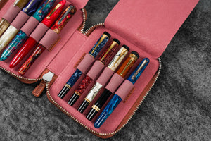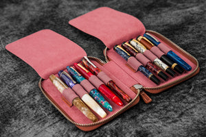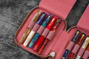 This Leather Zippered Pen Case has a velvet lined interior and holds up to 10 pens. When you want to carry your favorite pens, you want them protected in your bag, purse or pocket to avoid ink leaking everywhere or getting them scratched. This leather pen holder is great to protect your fountain pens and keep them safe.