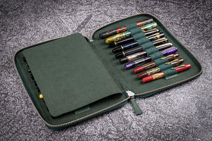 20'li Fermuarlı Deri Kalemlik - Crazy Horse Orman Yeşili