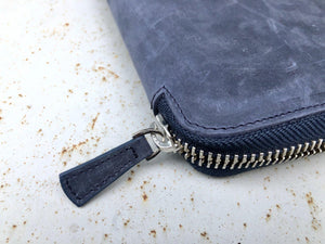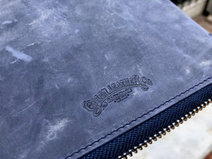 Eskiltilmiş koyu mavi deri, mavinin açıklı koyulu farklı tonlarını taşır. Crazy Horse, oldukça yumuşak ve az işlemden geçmiş bir deri türüdür. Bu nedenle deri üzerinde zamanla ve kullanıma bağlı olarak çizikler meydana gelebilir. Bu duruma patina adı verilir ve bazı deri severler için oldukça aranılan bir özelliktir. Eğer bu kullanım izlerinin sizi mutsuz edeceğini düşünüyorsanız, defterlerde karton kapaklı olanlara, kalemlik gibi deri ürünlerde ise cilalı derilere bakmanızı tavsiye ederiz.
