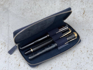 El yapımı, 3'lü fermuarlı deri kalemlik Handmade