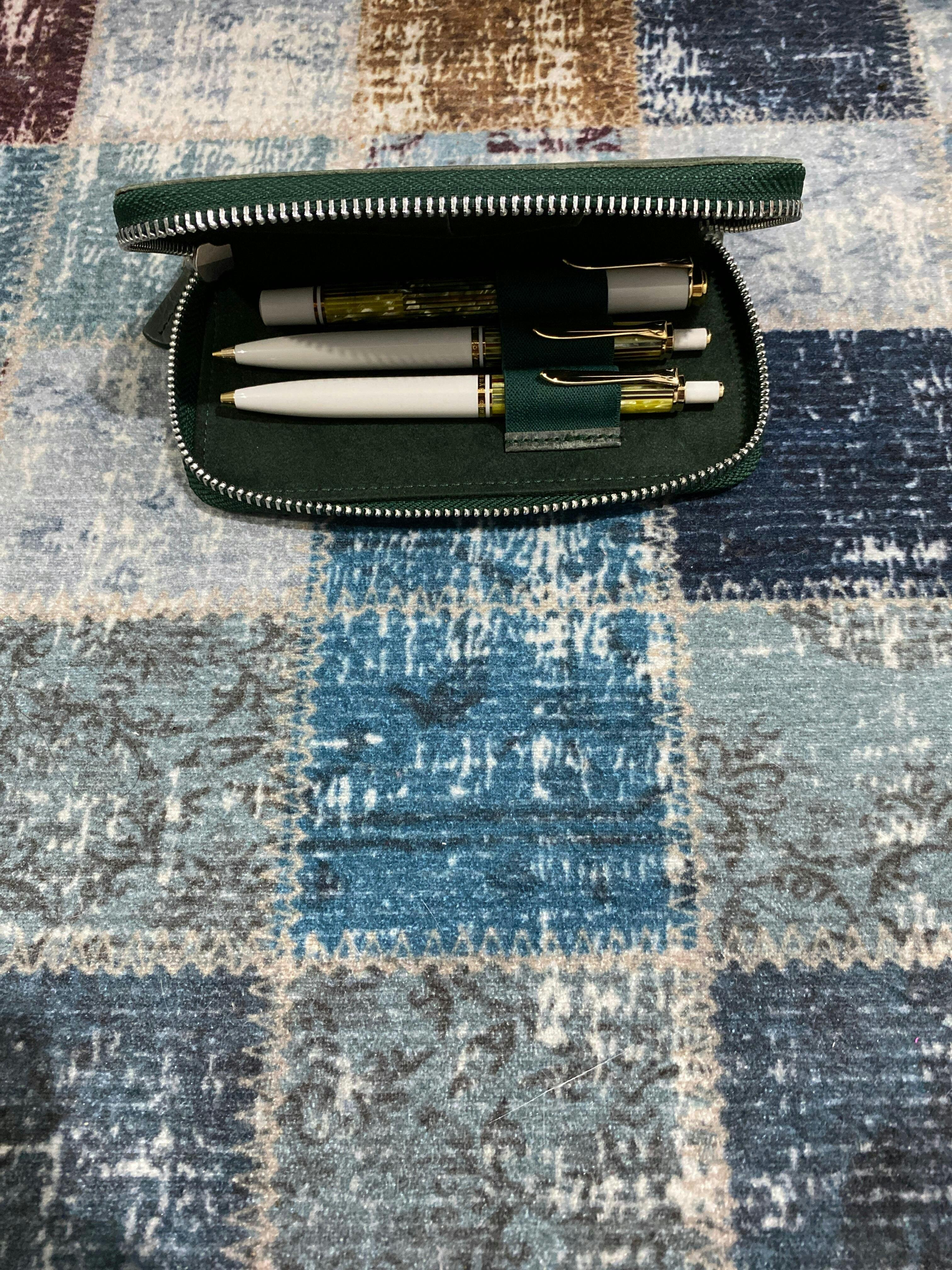 El yapımı, 3'lü fermuarlı deri kalemlik Handmade