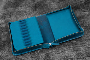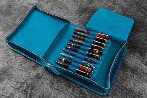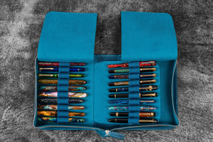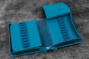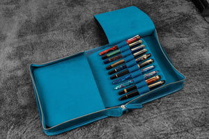 This Crazy Horse Brown Leather Zippered Pen Case has a velvet lined interior and holds up to 40 pens. When you want to carry or store your favorite pens, you want them protected in your bag, purse or pocket to avoid ink leaking everywhere or getting them scratched. This leather pen holder is great to protect your fountain pens and keep them safe.