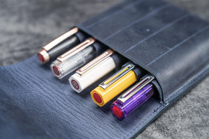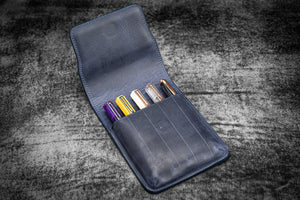 Eskiltilmiş koyu mavi deri, mavinin açıklı koyulu farklı tonlarını taşır. Crazy Horse, oldukça yumuşak ve az işlemden geçmiş bir deri türüdür. Bu nedenle deri üzerinde zamanla ve kullanıma bağlı olarak çizikler meydana gelebilir. Bu duruma patina adı verilir ve bazı deri severler için oldukça aranılan bir özelliktir. Eğer bu kullanım izlerinin sizi mutsuz edeceğini düşünüyorsanız, defterlerde karton kapaklı olanlara, kalemlik gibi deri ürünlerde ise cilalı derilere bakmanızı tavsiye ederiz.14 santimetre uzunluğa ve 1.5 santimetre gövde genişliğine kadar olan kalemlerle uyumludur.