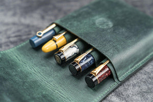 5'li Kapaklı Deri Kalemlik - Crazy Horse Orman Yeşili