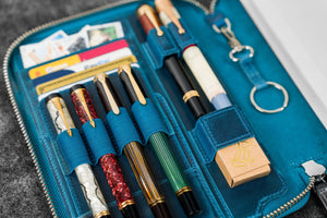 Galen Leather'in en sevilen ürünlerinden biri olan A5 Deri Organizer ve Kalemlik ile tanışmaya hazır mısınız? Bu düzenleyicinin marifetleri saymakla bitmiyor. Kalemler, kartvizitler, kredi kartları, anahtar, telefon, şarj aleti ve isterseniz bir A5 defter veya iPad Mini taşıyabileceğiniz bu organizer, toplantılarda ve seyahatlerde en büyük yardımcınız olacak. 4 kalem alan bölüm çıkarılabilir olduğundan dilerseniz "Slip-N-Zip" kalemliğinizle, ya da ayrıca taşıyabilir, masa üstünde kullanırken organizeden ayırarak kalemlerinizi yanınızda tutabilirsiniz.