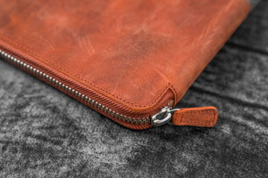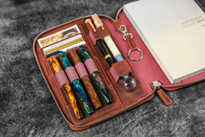 El yapımı, fermuarlı deri A5 organizer ve kalemlik