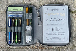 Galen Leather'in en sevilen ürünlerinden biri olan A5 Deri Organizer ve Kalemlik ile tanışmaya hazır mısınız? Bu düzenleyicinin marifetleri saymakla bitmiyor. Kalemler, kartvizitler, kredi kartları, anahtar, telefon, şarj aleti ve isterseniz bir A5 defter veya iPad Mini taşıyabileceğiniz bu organizer, toplantılarda ve seyahatlerde en büyük yardımcınız olacak. 4 kalem alan bölüm çıkarılabilir olduğundan dilerseniz "Slip-N-Zip" kalemliğinizle, ya da ayrıca taşıyabilir, masa üstünde kullanırken organizeden ayırarak kalemlerinizi yanınızda tutabilirsiniz.