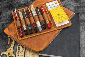 Leather Zippered Writer's Bank Bag - Pen Pouch