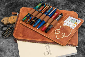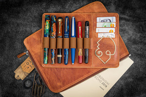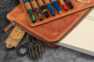 Leather Zippered Writer's Bank Bag - Pen Pouch