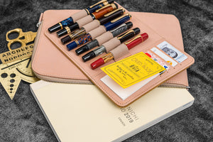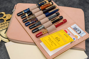 Leather Zippered Writer's Bank Bag - Pen Pouch