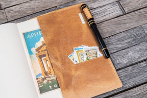 El Yapımı Deri A5 Defter / Planlayıcı Kılıfı Crazy Horse Honey Ochre