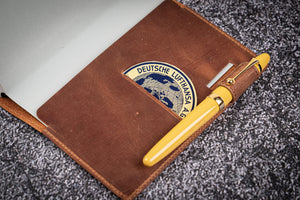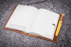 Save yourself the hassle of digging around your bag by keeping your valuables safe and secure in one place. Our Handmade Leather Slim A6 Notebook / Planner Cover is the perfect way to store your everyday essentials for work, study or personal use.