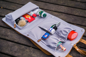 Artık tüm banyo ve kişisel bakım eşyalarınızı bir arada tutabilir ve şık bir şekilde seyahat edebilirsiniz. El Yapımı Asılabilir Deri Seyahat – Kozmetik Çantası, pratik ve fonksiyonel tasarımı sayesinde sadece eşyalarınızı düzenli tutmakla kalmaz, aynı zamanda seyahatlerde kolay kullanım sağlar.