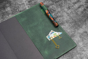 El Yapımı Deri B5 Defter Kılıfı - Crazy Horse Orman Yeşili