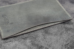 Distressed smoky color showing under-tones of the black and rich grey. Ages and softens quicker compared to regular leather. Suede feeling finish.