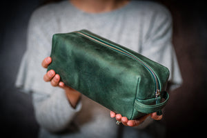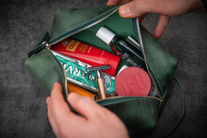 Şık bir şekilde seyahat edin ve kişisel bakım eşyalarınızı düzenli tutun. El Yapımı Klasik Deri Dopp Kit & Seyahat – Kozmetik Çantası, banyo ve tıraş ürünlerinizi taşımak için idealdir. Kolay taşıma için sap detayı sayesinde pratik kullanım sunar. Ucuz tuvalet çantalarının aksine eşyalarınızı korur ve güvenle sabitler; bu pratik ve şık çantayla kendinizi yine zarif bir centilmen gibi hissedeceksiniz.