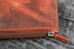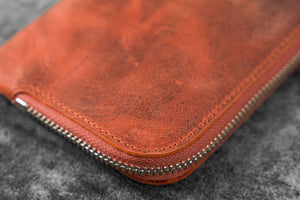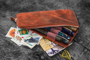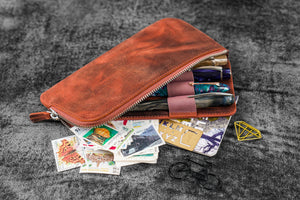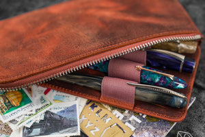 Handmade Leather Slip-N-Zip 4 Slots Pen Pouch