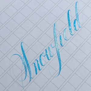 This ink is made in South Korea from raw materials that are safe for fountain pens, accompanied by a color consultant. Dominant Industry inks have an excellent balance of permeability and viscosity so they write fluently on paper but not harsh on the nibs. The ink is pH neutral and has been formulated not to harm pen resins or celluloid. Glass Bottle in 25ml size and comes in a dust bag. Standard Series and suitable for fountain pen use.