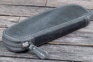 2 Kalem için El Yapımı Deri Fermuarlı Duo İnce Kalem Kutusu