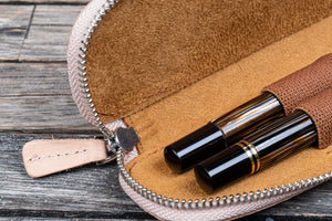 Handmade Leather Zippered Duo Slim Pen Case for 2 Pens