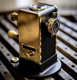 One of the most iconic pieces, the M-430 hand-crank pencil sharpener, finished in 23kt gold and black lacquer. No desk would be complete without this beauty. A perfect pencil, everytime.