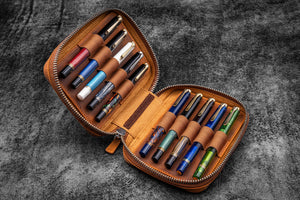 This Leather Zippered Pen Case has a velvet lined interior and holds up to 10 pens. When you want to carry your favorite pens, you want them protected in your bag, purse or pocket to avoid ink leaking everywhere or getting them scratched. This leather pen holder is great to protect your fountain pens and keep them safe.