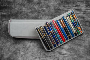 Transport your favorite pens safely without them getting damaged or scratched with our Handmade Crazy Horse Smoky Leather Zippered Magnum Opus 12 Slots Pen Case. This sturdy case features a removable tray that slides in and out effortlessly, providing you easy access to your pens. The removable tray also includes 3 individual pen slots lined with soft velvet material to prevent scratches. Whether you're carrying your pens in your in bag or luggage, you'll have the peace of mind knowing that your pens are well protected from bumps, knocks, scratches and damage with this leather case. Suitable for most fountain pens and other type of pens.