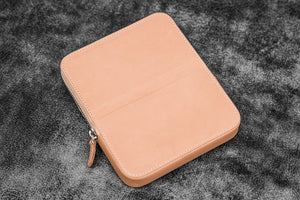 Transport your favorite pens safely without them getting damaged or scratched with our Handmade Undyed Leather Zippered Magnum Opus 6 Slots Pen Case. This sturdy case features a removable tray that slides in and out effortlessly, providing you easy access to your pens. The removable tray also includes 3 individual pen slots lined with soft velvet material to prevent scratches. Whether you're carrying your pens in your in bag or luggage, you'll have the peace of mind knowing that your pens are well protected from bumps, knocks, scratches and damage with this leather case. Suitable for most fountain pens and other type of pens.