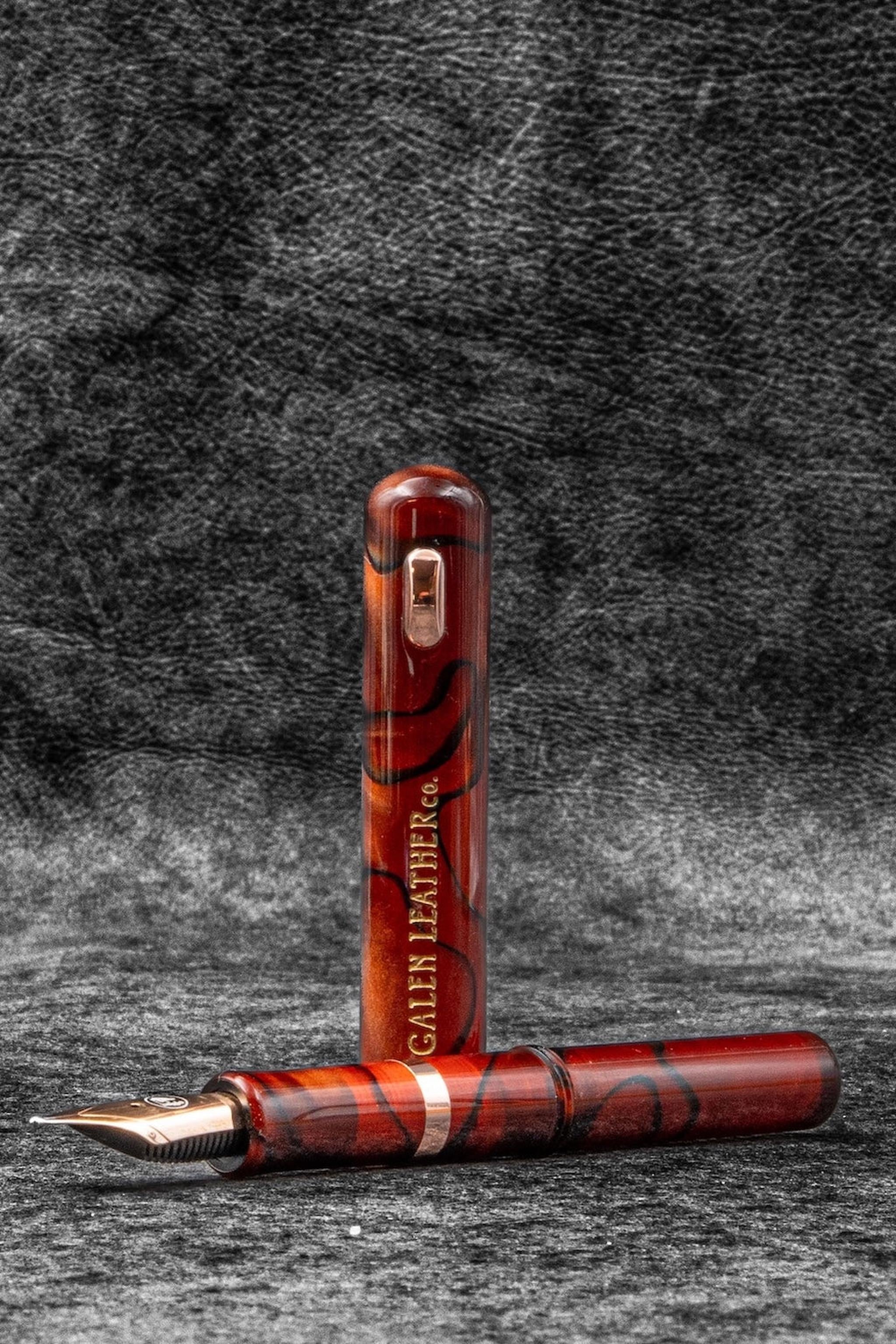 Fine Writing International ile ilk iş birliğimiz olan Pencket Dolmakalem, rose gold JoWo #6 boyutunda uç ile geliyor. Kalem, dönüştürücü (converter) ile birlikte sunulmaktadır ve Dolmakalem Günü 2025’te resmi olarak satışa çıkacaktır. Her kalemin üzerine Galen Leather logosu hafifçe işlenmiştir; bu özel iş birliğini zarif bir detayla taçlandırır.