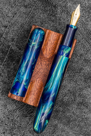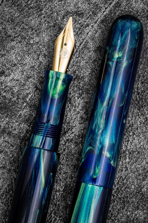 Studyo Ağaçkakan & Galen iş birliği Dolma Kalem V2, Jonathon Brooks tarafından üretilen Cenote malzemesinden, klasik puro formunda tasarlanmıştır. JoWo çelik #6 uç ile gelir. Uç seçenekleri yukarıdadır.
