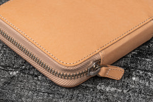 El yapımı, deri, fermuarlı koleksiyoner kalem kılıfı.
