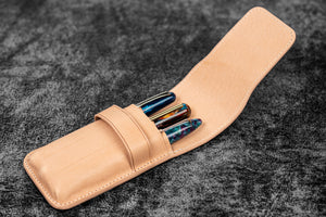 Handmade Leather Flap Pen Case For 3 Pens
