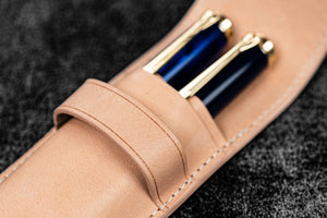 Our Two Pen Leather Flap Pen Case will keep your precious pens from getting scratched, ruined, or from leaking in your bag or jacket pocket. Suitable for most Fountain pens and other type of pens.