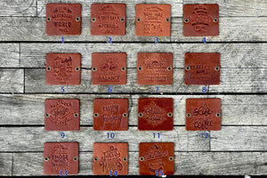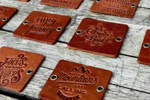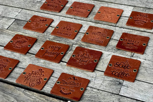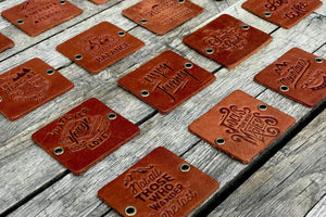 These leather tags are embossed by hand on locally sourced, vegetable tanned brown leather.