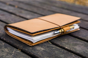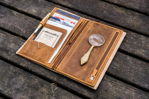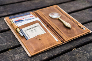 This leather long travel wallet can be seamlessly incorporated into your regular size Traveler's Notebook or used as a stand-alone wallet.