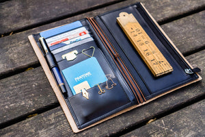 This leather long wallet can be seamlessly incorporated into your Traveler's Notebook or used as a stand-alone wallet.