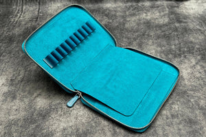 Handmade Leather Zippered 10 Slots Pen Case with A5 Notebook Holder