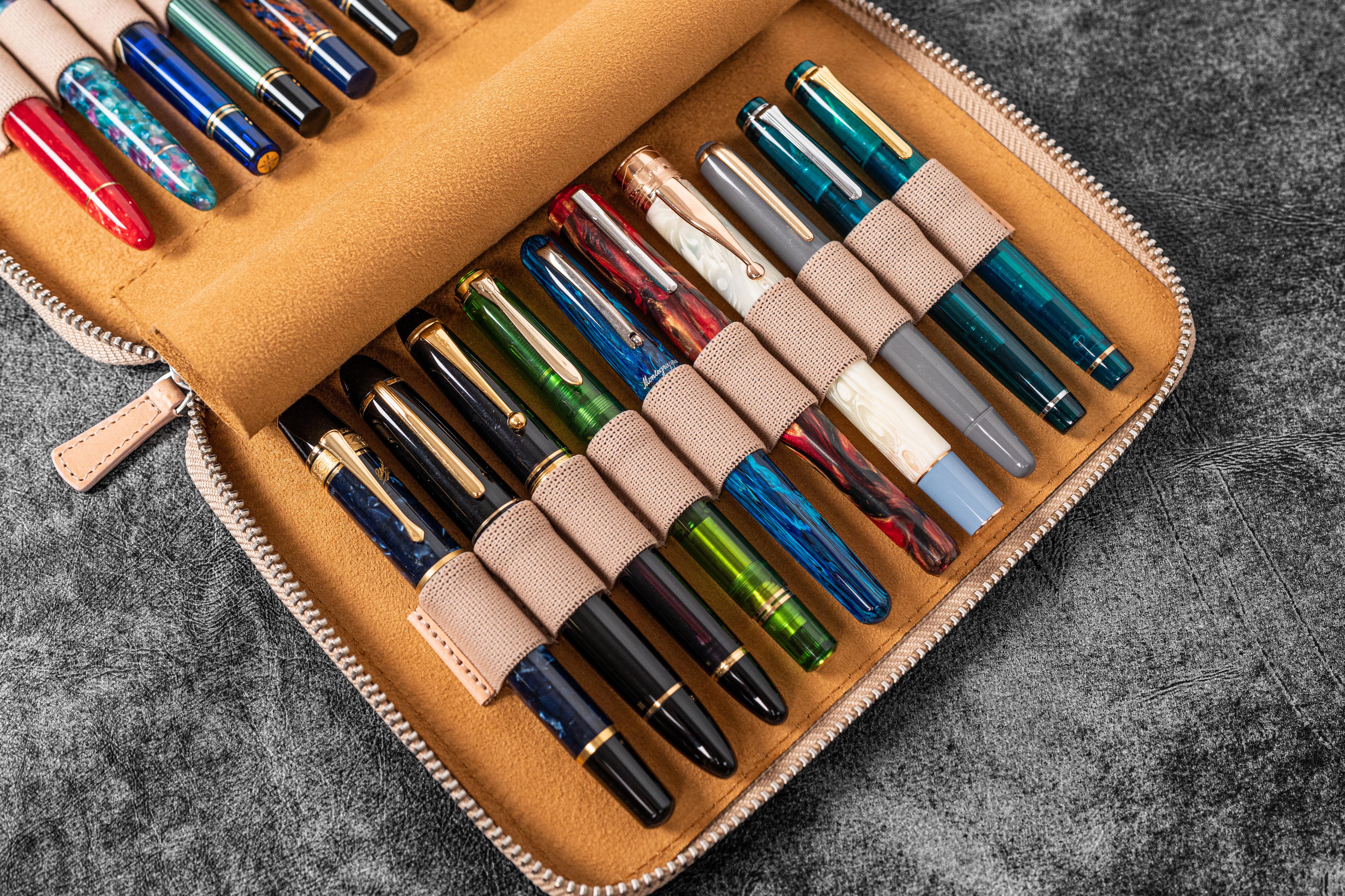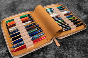 Handmade Leather Zippered 20 Slots Pen Case - Undyed