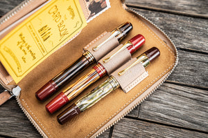 Handmade Leather Zippered 3 Slot Pen Case