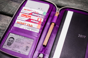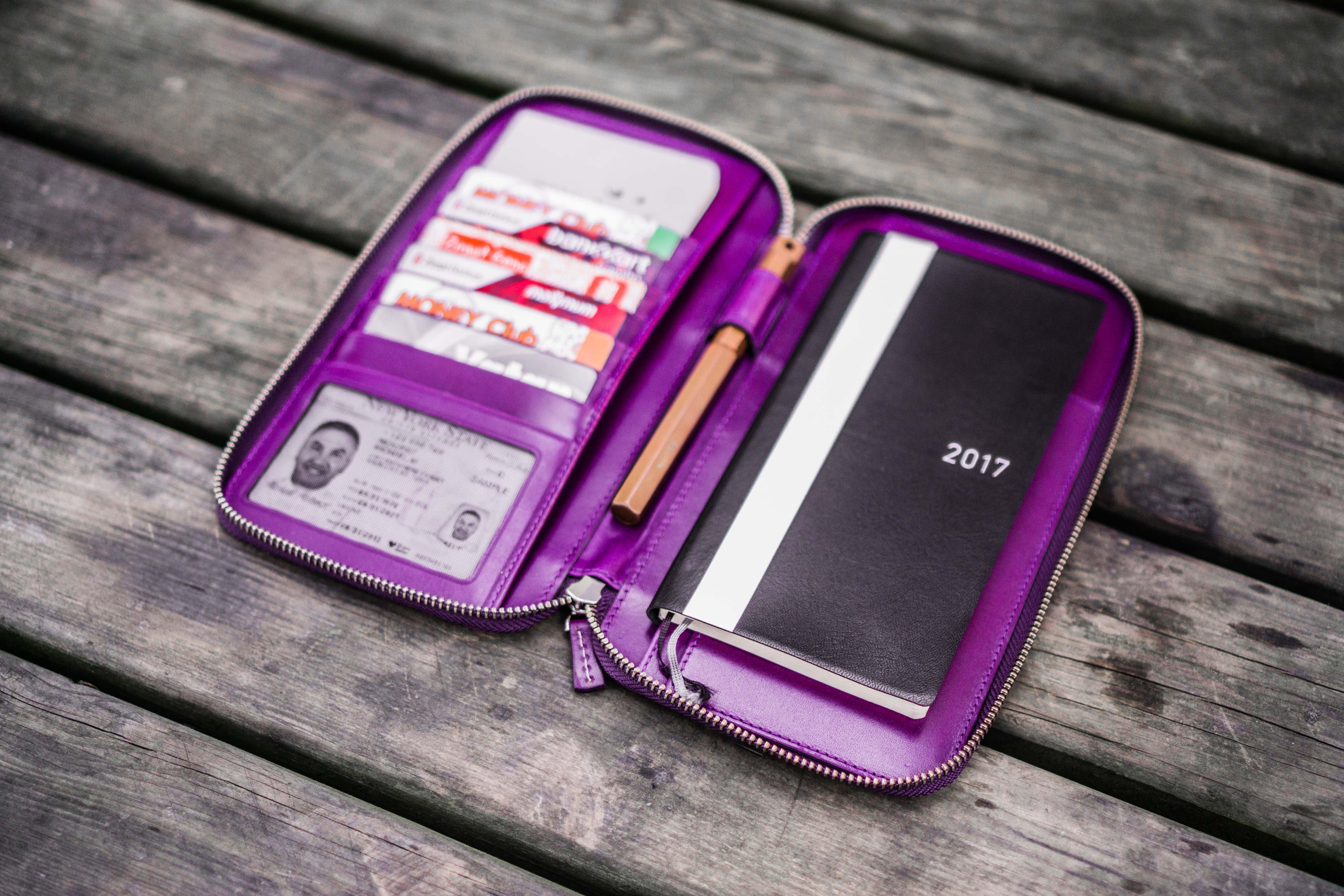 This purple leather Zippered Hobonichi Weeks Cover is the perfect for solution for an all-in-one Hobonichi Weeks notebook holder. It allows you the ultimate flexibility in carrying your everyday essentials, with the security of the sturdy zipper so nothing falls out.