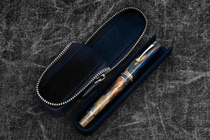 Transport your favorite pens safely without them getting damaged or scratched with our Handmade Crazy Horse Navy Blue Zippered Magnum Opus Single Pen Case. This sturdy case features a removable tray that slides in and out effortlessly, providing you easy access to your pens. The removable tray also includes single pen slots lined with soft velvet material to prevent scratches. Whether you're carrying your pens in your in bag or luggage, you'll have the peace of mind knowing that your pens are well protected from bumps, knocks, scratches and damage with this leather case. Suitable for most fountain pens and other type of pens.