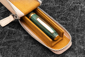 Transport your favorite pens safely without them getting damaged or scratched with our Handmade Undyed Leather Zippered Magnum Opus Single Pen Case. This sturdy case features a removable tray that slides in and out effortlessly, providing you easy access to your pens. The removable tray also includes single pen slots lined with soft velvet material to prevent scratches. Whether you're carrying your pens in your in bag or luggage, you'll have the peace of mind knowing that your pens are well protected from bumps, knocks, scratches and damage with this leather case. Suitable for most fountain pens and other type of pens.