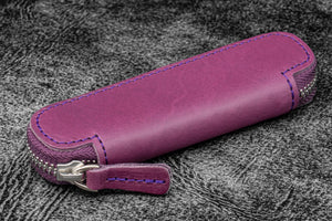 Handmade Purple Leather Zippered Single Pen Case for Kaweco