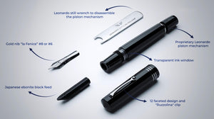 Açıklama: Leonardo Guillochè Dodici, volkanik camın enerjisini ve zarafetini yansıtan numaralı (sınırlı olmayan) bir koleksiyon parçasıdır. Derin siyah kaplama, kalemin çok yüzeyli tasarımını ve rafine açılarını öne çıkararak form ve fonksiyon arasında mükemmel bir denge sağlar. Volkanik manzaralardan ilham alan bu kalem, benzersiz ve yoğun bir yazı deneyimi sunar.