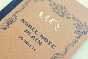 Life Noble Note - A7 - Plain. This adorable mini version of the Life Noble Note Notebook features an identical notebook as the larger Noble Notebooks but in a portable pocket- and travel-friendly size with fewer sheets so that it's lighter to carry around. Each notebook style (plain, section and ruled) comes in a brightly colored soft card stock paper cover and the notebook covers are decorated with a vintage style border and Life's branding printed in gold foil stamping. Inside this notebook, you will find the same exceptionally smooth, acid-free paper that's great for fountain pen writing that comes in all of Life's Noble series notebooks.