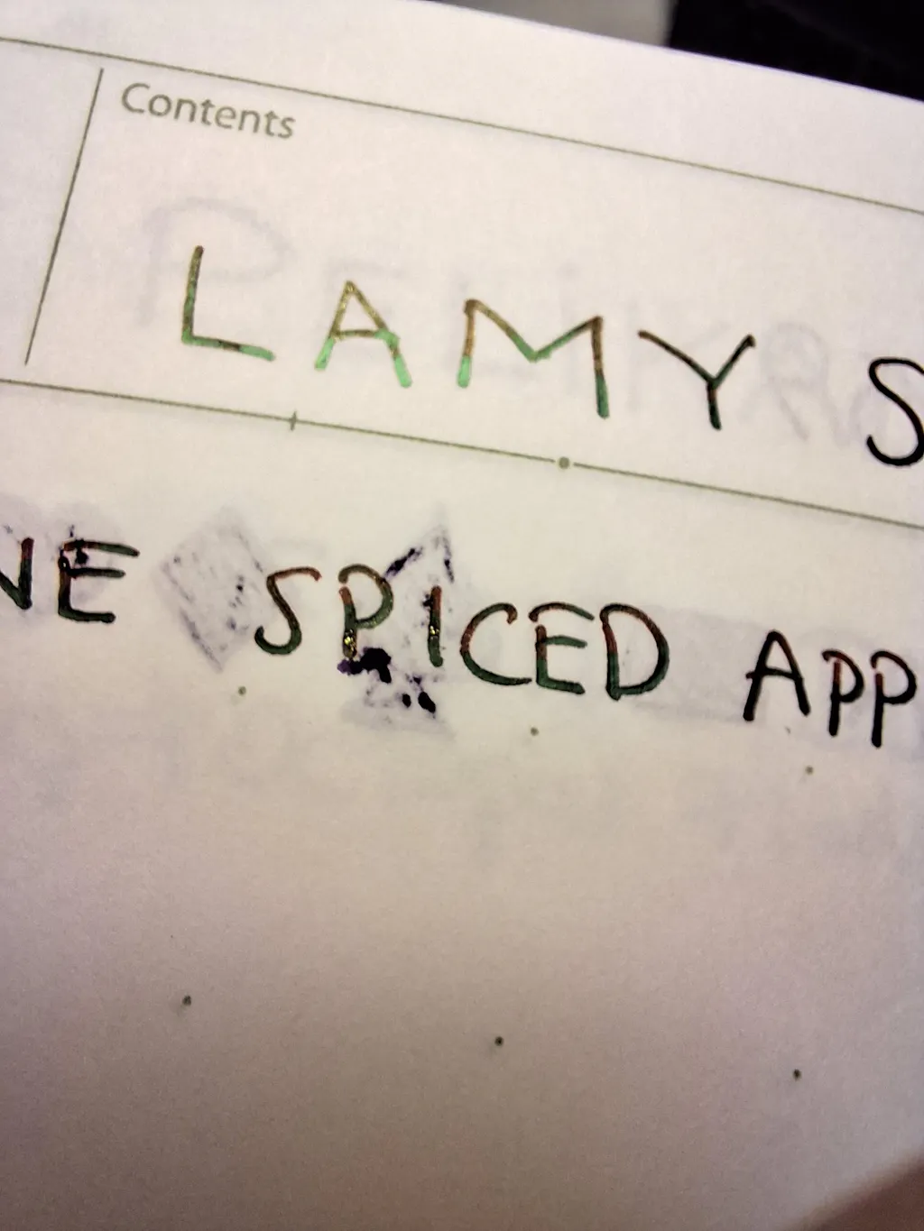 Defter oldukça pürüzsüz kaygan kağıt yapısına sahip. Tam olaram dolmakalem uyumlu diyemem ama yazması çok keyifli, revnak gösteriyor. Dolmakalemde bazi mürekkepler ve B uçta arkaya geçirebiliyor.