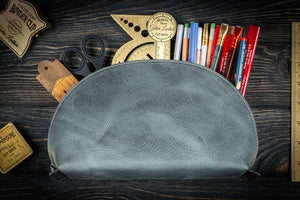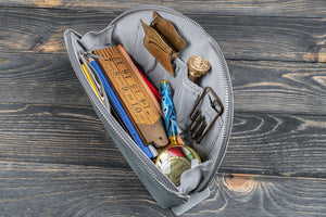 Keep your cosmetic organized with a Handmade Leather Lunar Makeup / Toiletry Bag . This makeup bag is perfect for storing all your cosmetics and everday accessories. Say goodbye to the cheap makeup bags that do nothing to protect or secure your precious items. Features include an internal elastic large pouch , 2 narrow elastic pouches and one zippered pocket.